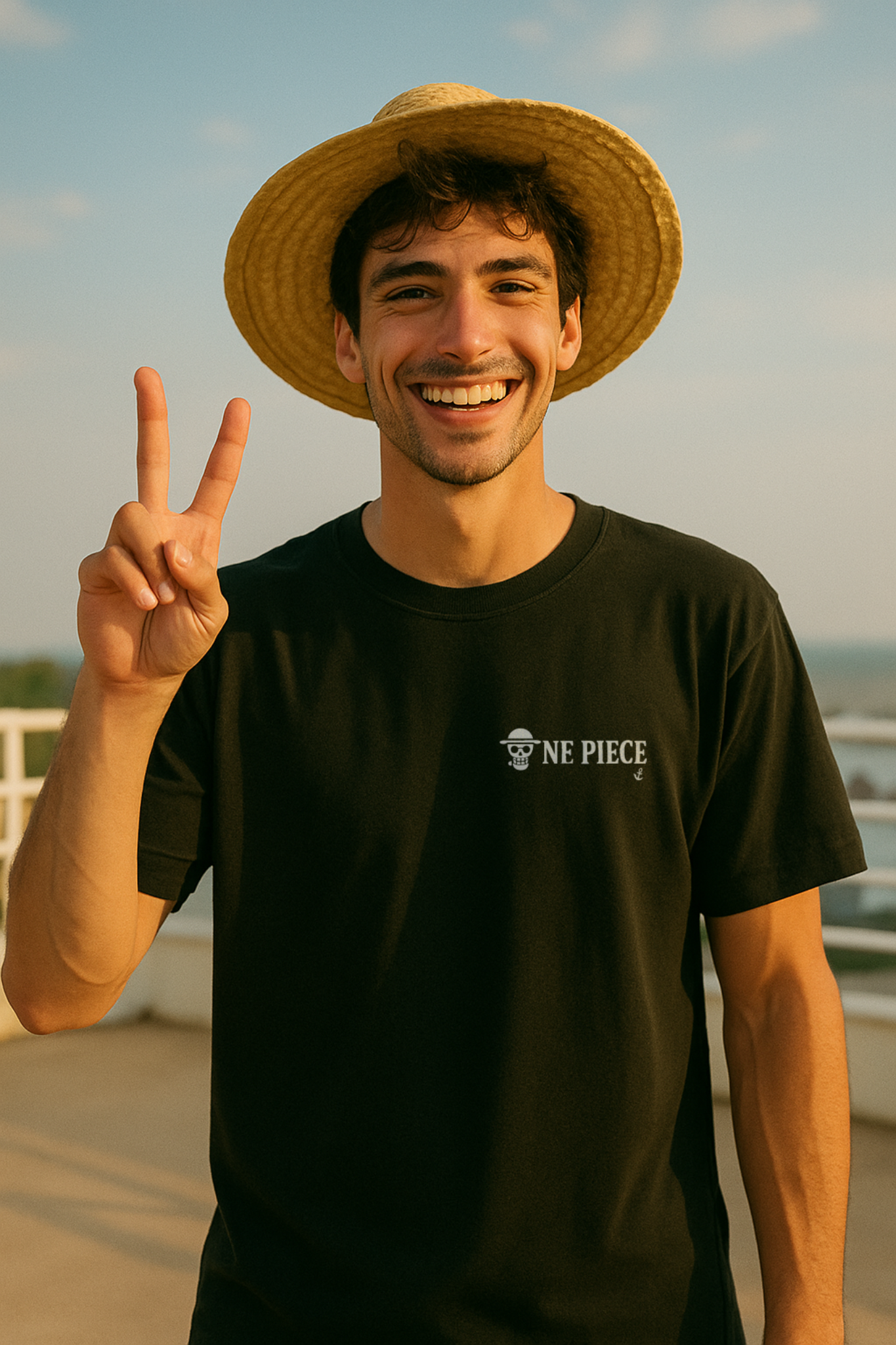 This isn’t just a T-shirt—it’s a quiet declaration of your journey with the greatest pirate tale ever told. The subtle front logo keeps things minimal and sharp, while the back tells the real story—Luffy, standing tall, holding his straw hat, ready to take on the world. It's a tribute to freedom, resilience, and the spirit of adventure. Whether you're setting sail or just stepping out, this tee reminds you that "Kaizoku oni ore wa naru" isn't just a dream—it's a mindset.