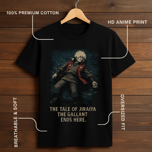 With Jiraiya’s final message echoing through both front and back, every thread speaks of bravery, mentorship, and a legacy that refuses to fade. Made with soft, breathable fabric and lasting quality, it wears like a battle-hardened scroll — built to endure, just like the tale it carries.